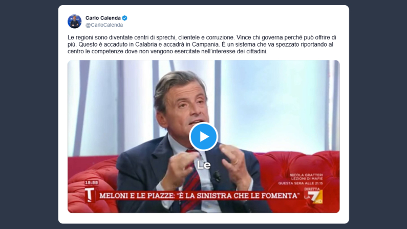 Il segretario di Azione, Carlo Calenda, ha scritto ieri su X: «Le regioni sono diventate centri di sprechi, clientele e corruzione. Vince chi governa perché può offrire di più». Questo, spiega Calenda, è accaduto in «Calabria e accadrà in Campania. È un sistema che va spezzato riportando al centro le competenze dove non vengono esercitate nell’interesse dei cittadini».