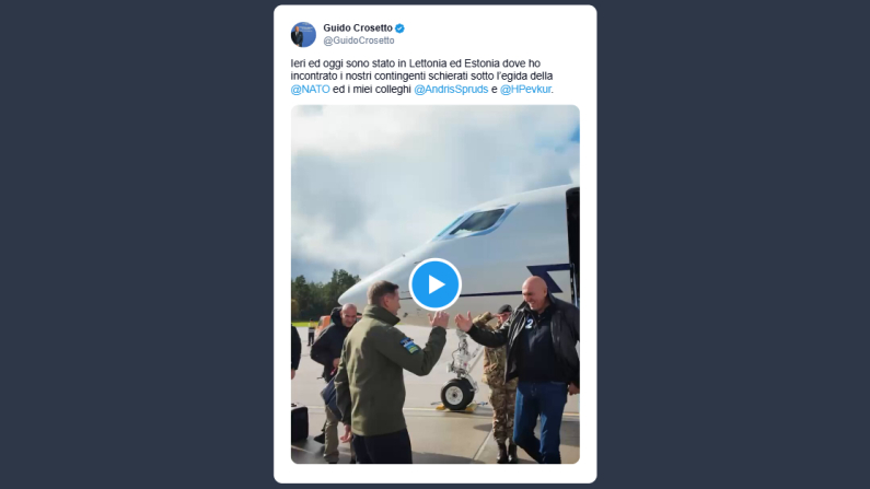 «Ieri ed oggi sono stato in Lettonia ed Estonia dove ho incontrato i nostri contingenti schierati sotto l’egida della Nato ed i miei colleghi Andris Spruds e Hanno Pevkur». Lo ha dichiarato ieri il ministro della Difesa, Guido Crosetto, in un post su X.