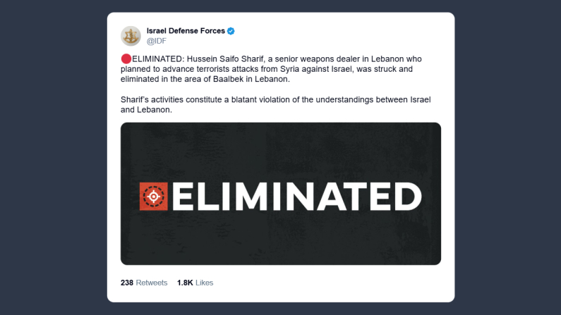 Eliminato importante trafficante d’armi dalle Forze Difesa Israeliane in Libano