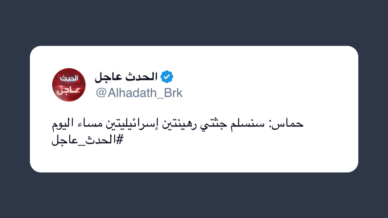 Hamas ha annunciato che consegnerà questa sera i corpi di due ostaggi israeliani, secondo un comunicato rilanciato dall’account AlHadath Breaking.