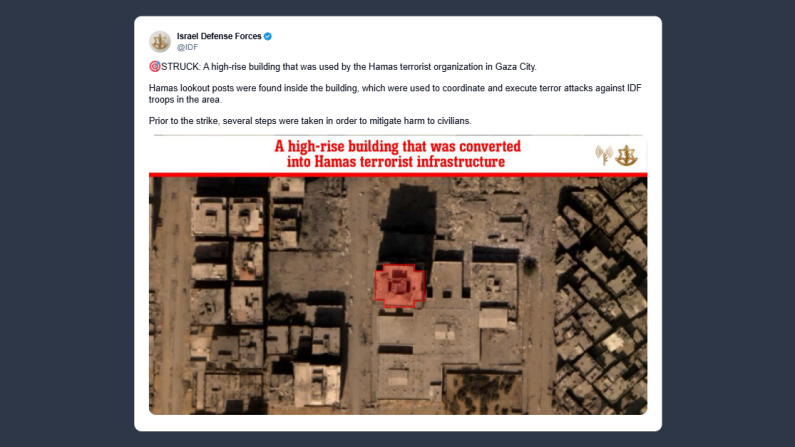 Le Forze di Difesa israeliane hanno annunciato ieri su X che è stato colpito un edificio utilizzato dall’organizzazione terroristica Hamas a Gaza City. «All’interno dell’edificio sono stati scoperti postazioni di osservazione di Hamas, impiegati per coordinare ed eseguire attacchi terroristici contro l’esercito israeliano nella zona». Prima dell’attacco, concludono le Idf, sono state adottate «le misure necessarie per ridurre al minimo i danni ai civili».