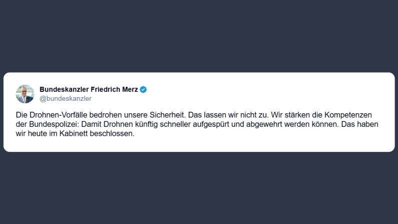 «Gli incidenti con i droni mettono a rischio la nostra sicurezza, e noi non lo permetteremo. Rafforzeremo le competenze della polizia federale per garantire che, in futuro, i droni possano essere individuati e neutralizzati più rapidamente. Questa decisione è stata approvata oggi in Consiglio dei ministri».