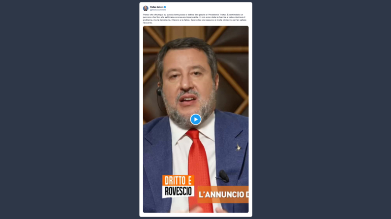 Salvini: tutti dovrebberp ringraziare Trump per la pace a Gaza