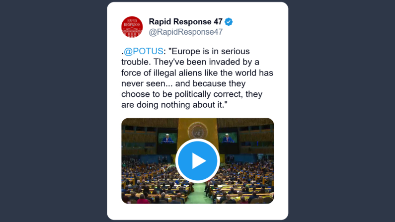 La Casa Bianca ha riportato ieri su X il discorso all’Assemblea generale dell’Onu del presidente degli Stati Uniti, Donald Trump: «L’Europa è in grave difficoltà. Ha subito un’invasione di massa di immigrati irregolari che non si era mai vista prima d’ora. E a causa del “politiamente corretto”, non stanno facendo nulla per affrontarlo».
