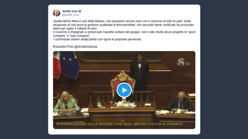 Il ministro delle Imprese e del Made in Italy, Adolfo Urso, ha scritto ieri su X: «Quella dell’Ex Ilva è una sfida titanica, che possiamo vincere solo con il concorso di tutte le parti. Sulla situazione di crisi pesa la gestione scellerata di Arcelor Mittal, che secondo stime certificate ha provocato danni per quasi 4 miliardi di euro». Il Governo, afferma Urso, si impegna a «preservare l’assetto unitario del gruppo: non è allo studio alcun progetto di “good company” e “bad company”».
