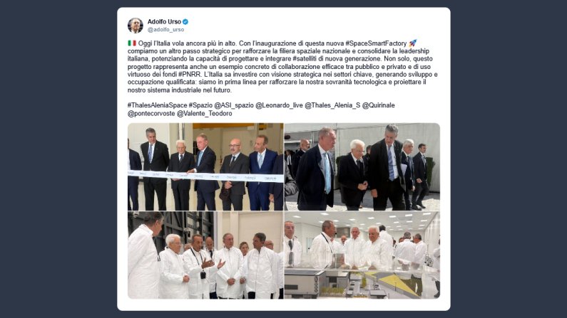 Urso: l’Italia vola ancora più in alto con l’inaugurazione della nuova Space Smart Factory