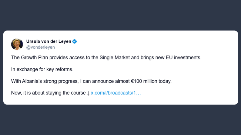 Il presidente della Commissione Europea, Ursula von der Leyen, ha scritto su X: «il Piano di crescita offre l’accesso al mercato unico e porta nuovi investimenti dell’Ue. In cambio di riforme chiave».