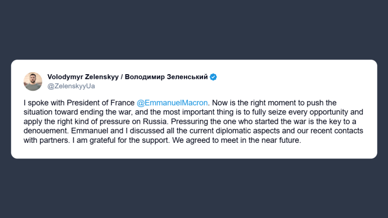 Zelensky a Macron: è il momento giusto per spingere verso la fine della guerra